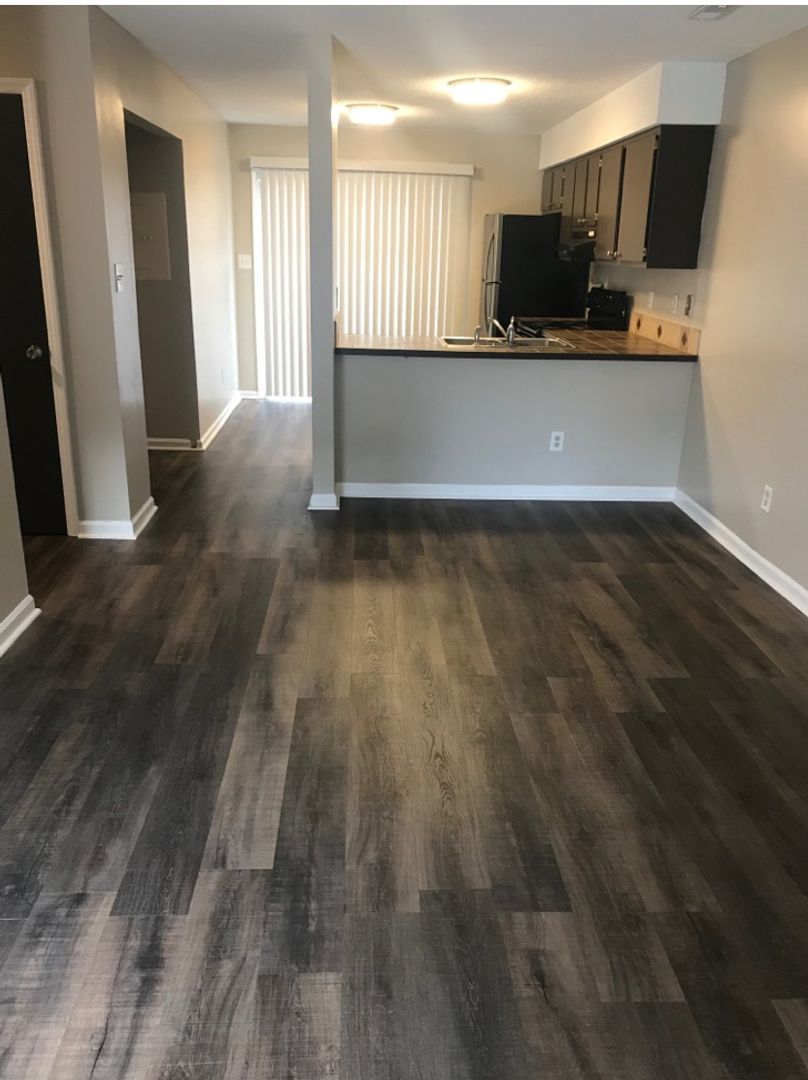 Behind the lush row of Cypress trees lies a quaint single story townhome. Interior freshly painted from top to bottom with a beautiful Sherwin Williams paint and gleaming white trim! Smooth Ceilings offer a modern touch style! SLEEK Luxury vinyl plank floors all throughout main living areas of the townhome! NEW Carpet in both bedrooms! Open flow between the living room (11x20'), and eat in kitchen. Breakfast bar provides a nice space for eating a quick bite or doing homework! Kitchen comes equipped with stainless refrigerator and stove.